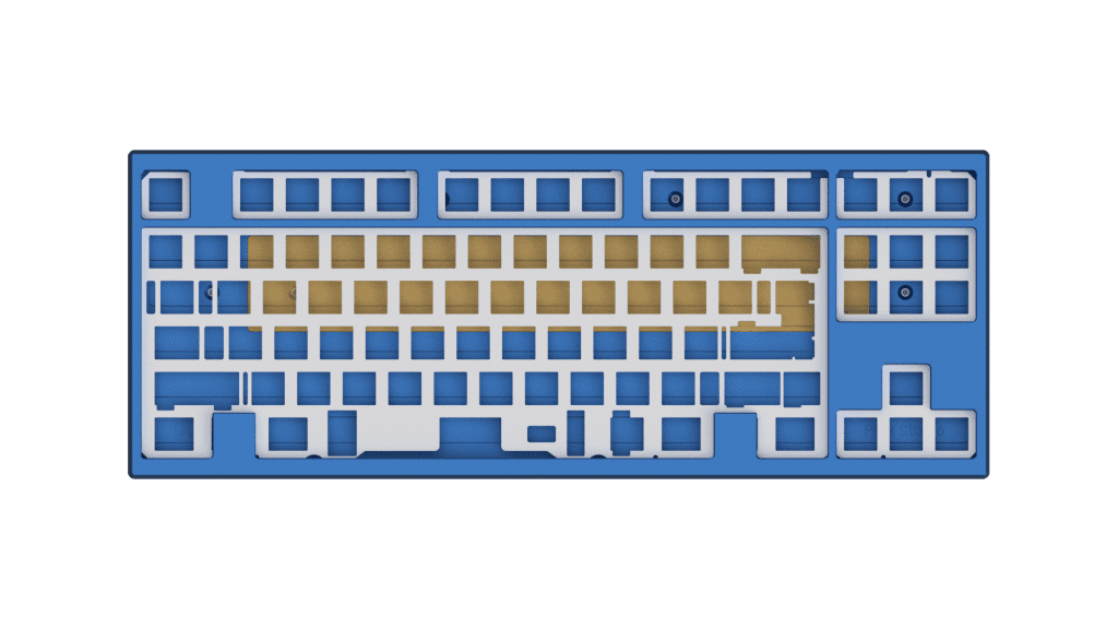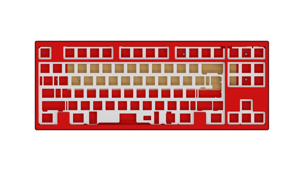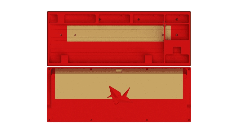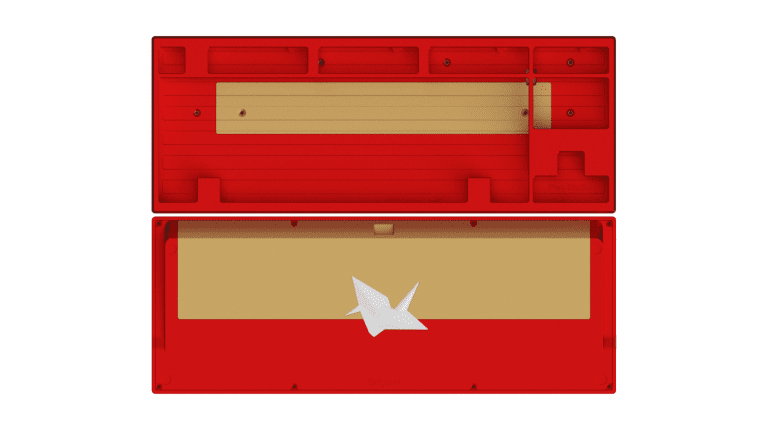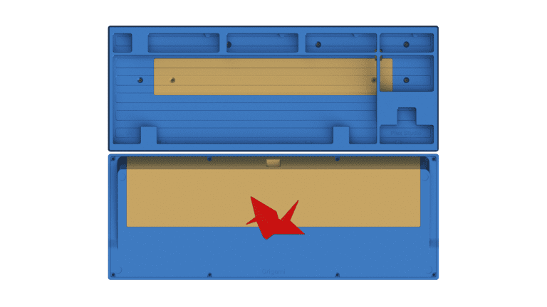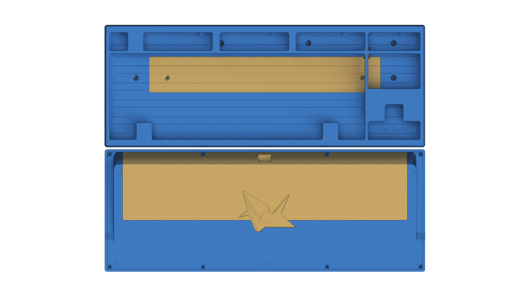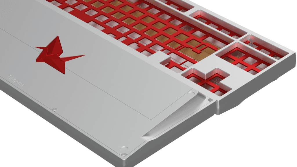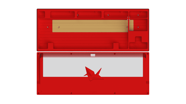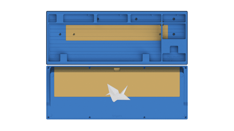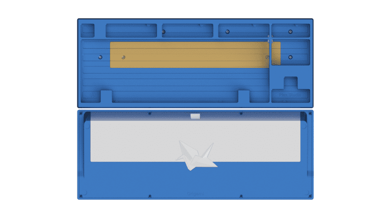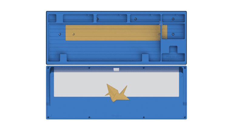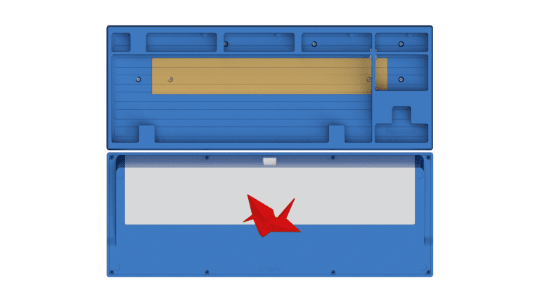 Origami is a WK/WKL TKL that support 3 mounting styles, classic top mount, o-ring and rubber pin. Overall external looks of this keyboards is a fusion between classic custom keyboard with a touch of modernity. The primary objectives of this keyboard are to provide the best possible typing experience and outputting proper sound design while keeping the price as low as we could without sacrificing build quality and finish as we work with factory that manufactures few popular keyboard in this hobby. There will be 4 color options that we will offer, Silver, Black, Red and Blue. All options will have silver external “weight” as default configuration and can be upgraded to brass.