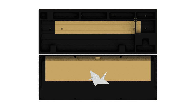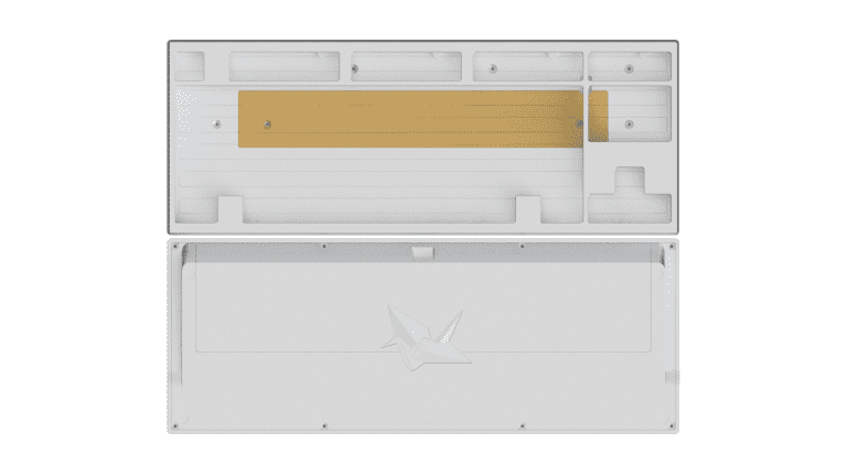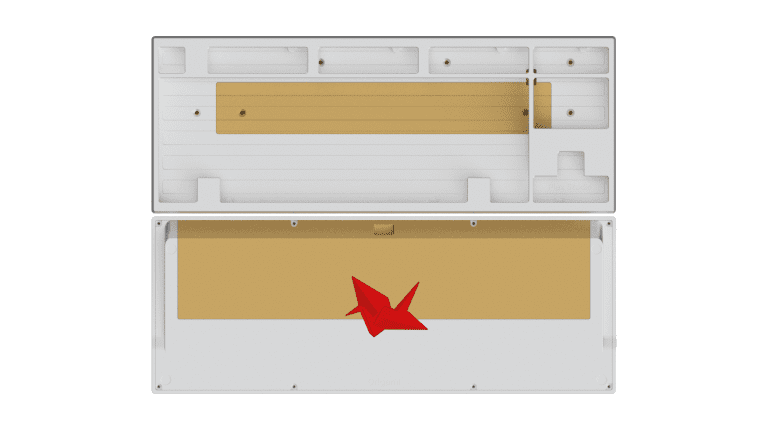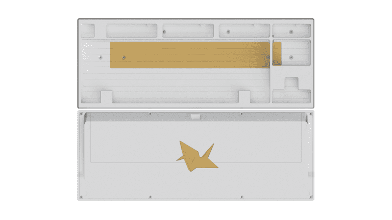 In collaboration between Atelier by Pluskb and Plexkbd Studio, this keyboard design combines a clean and classic aesthetic that I love from a earlier custom keyboard and then adds a modern touch and does not disrupt the classic look itself. The crane weight under this keyboard symbolizes the first Origami model I created when I was 5 years old. Instead of implementing simple engraving like other keyboards do, I incorporated a prismatic design of a crane into the design of the keyboard.