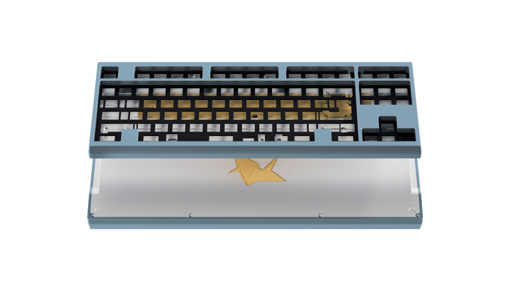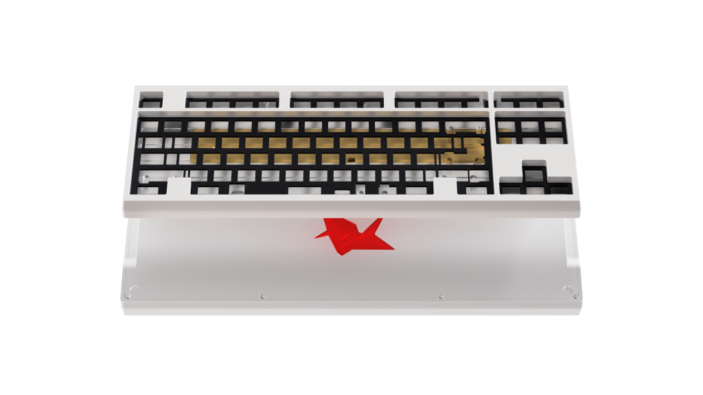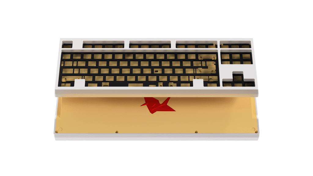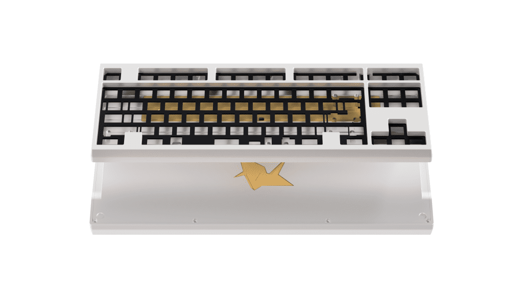 In collaboration between Atelier by Pluskb and Plexkbd Studio, this keyboard design combines a clean and classic aesthetic that I love from an earlier custom keyboard and then adds a modern touch and does not disrupt the classic look itself. The crane weight under this keyboard symbolizes the first Origami model the designer created when he was 5 years old. Instead of implementing simple engraving like other keyboards do, the designer incorporated a prismatic design of a crane into the design of the keyboard.