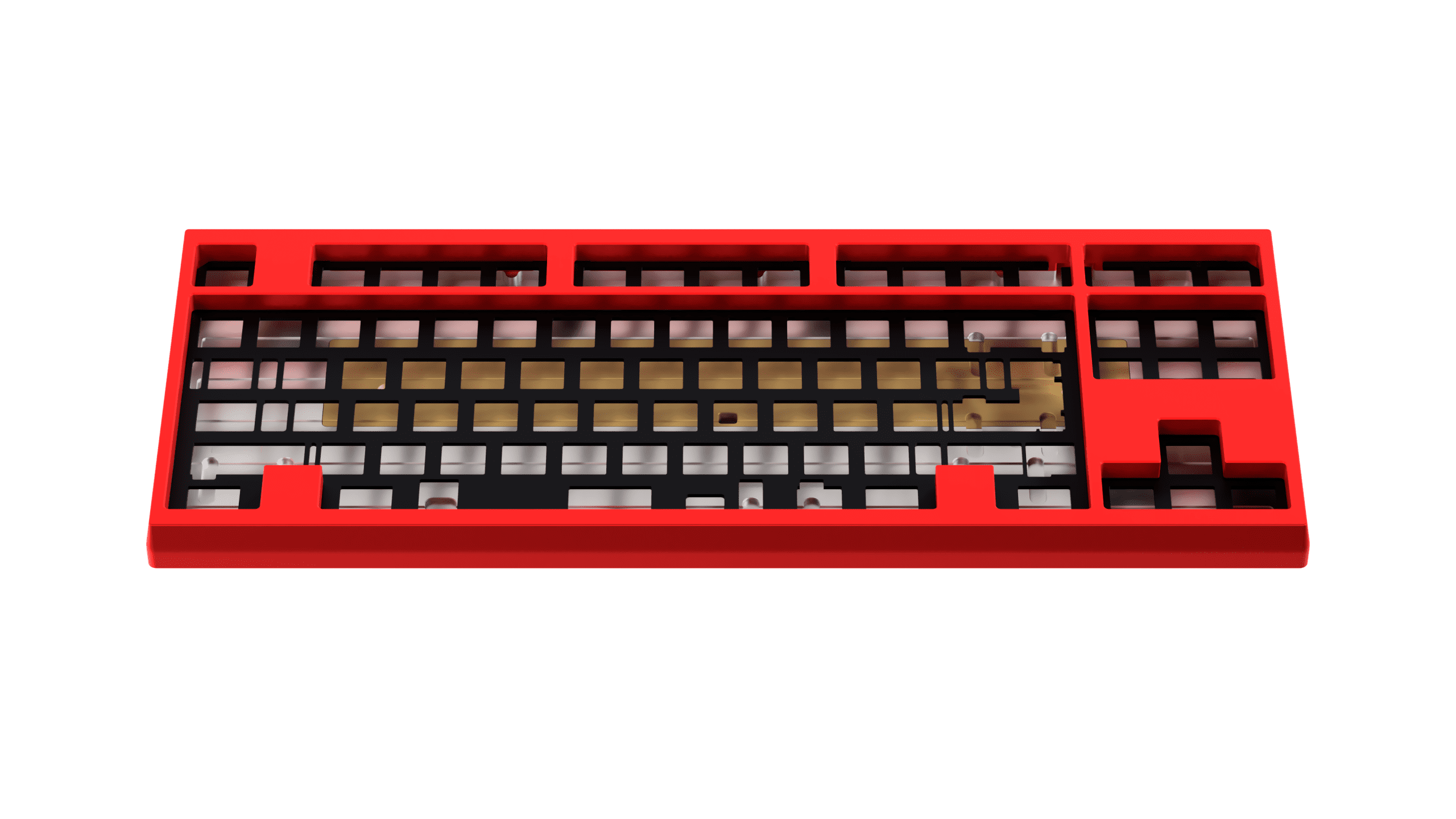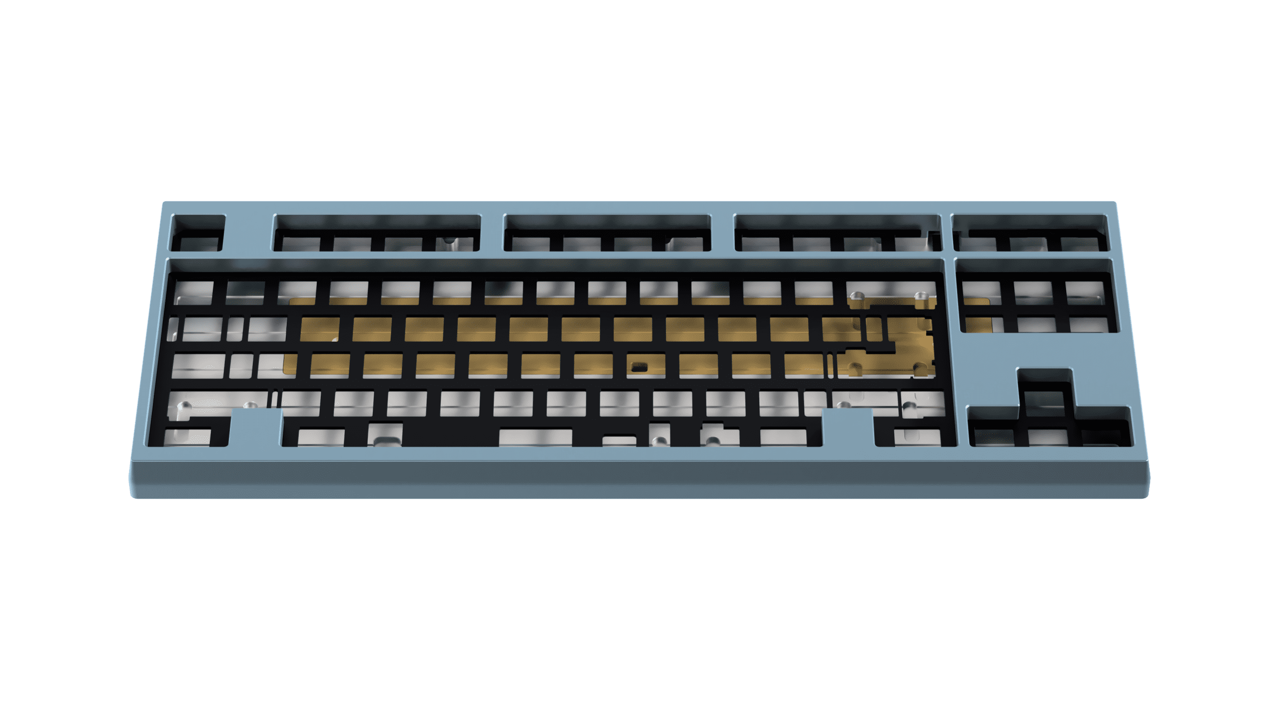 We added clearance for the stabilizer. Since we removed the external weight, the outer part of the bottom case will look much simpler and cleaner compared to v1. The USB position will also change from the center to the right side. The bottom case will be silver for all colors, aiming to provide a color contrast between the top and bottom cases. Since the crane weight will be the same color as the top case, this will also make the crane weight stand out more. We will also offer a brass bottom case in v2 with a minimum order quantity (MOQ) of 30 pieces. V1 buyers can purchase the brass bottom case without having to buy the full kit if desired since it will be fully compatible with every V1 parts (top case, internal weight, crane weight, etc.).