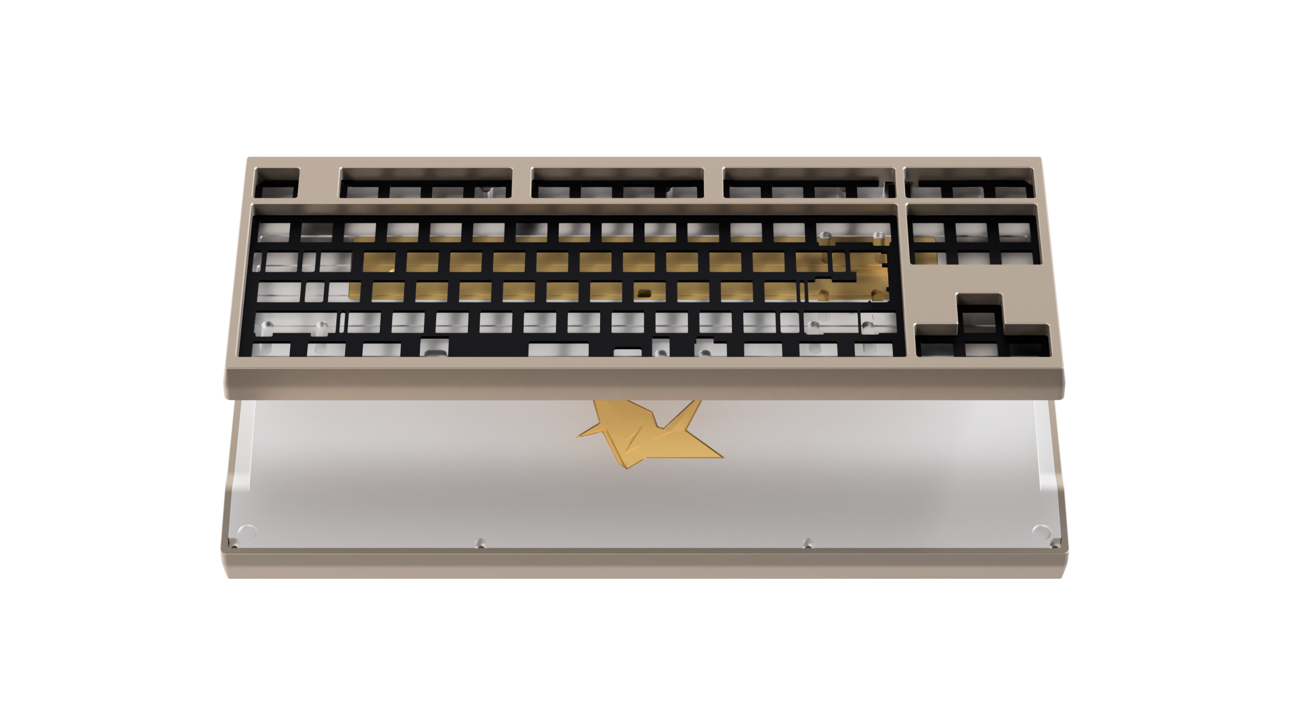 - Keyboard case (Top, brass internal weight, alu/brass bottom, alu/brass crane weight)